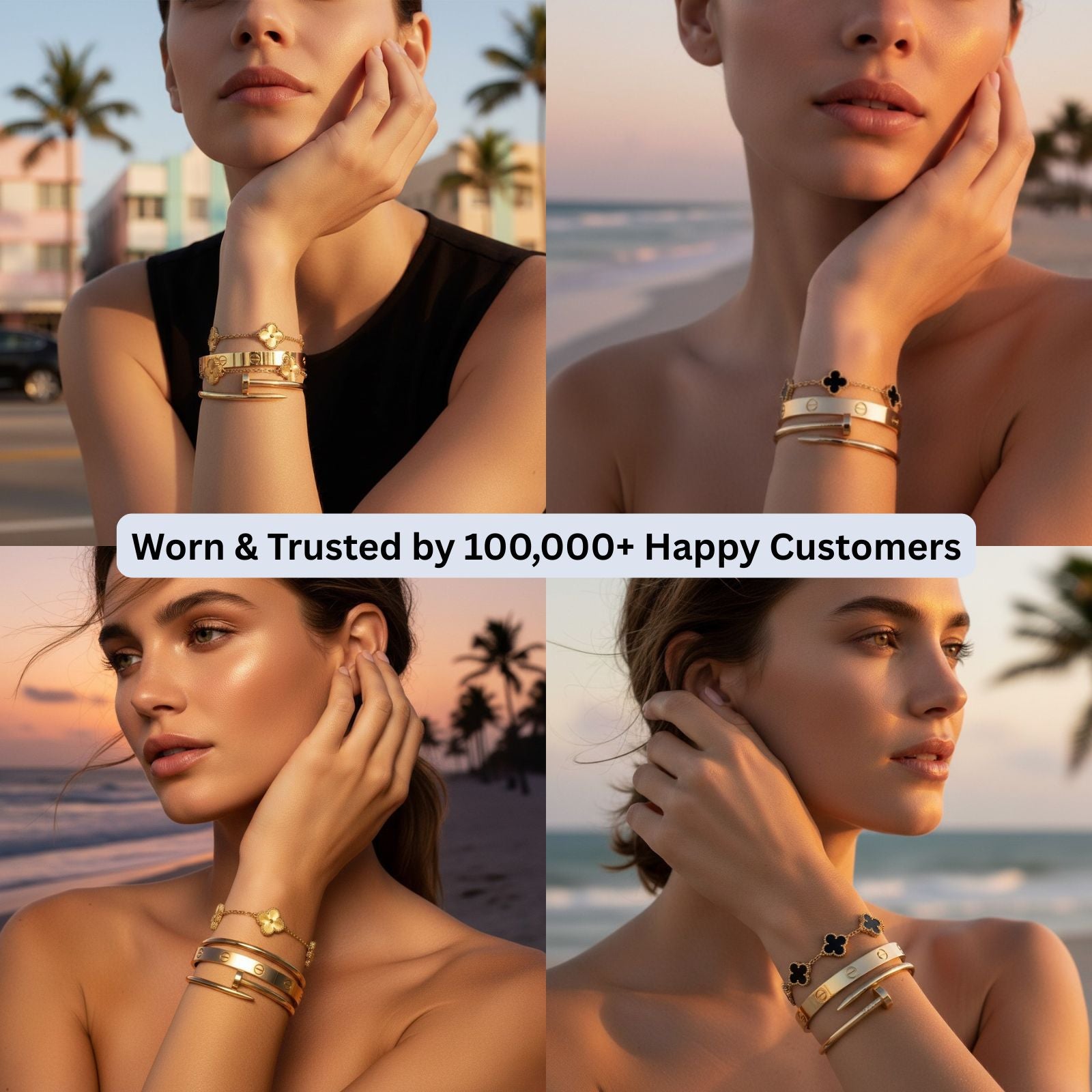 At Veloura, we believe our jewelry enhances every moment of your life with luxury and elegance. Crafted with premium stainless steel plating or 18-karat gold, each piece is a harmonious blend of modernity and sophistication, designed to complement your style effortlessly. Built for durability, our jewelry ensures you can wear it confidently every day.